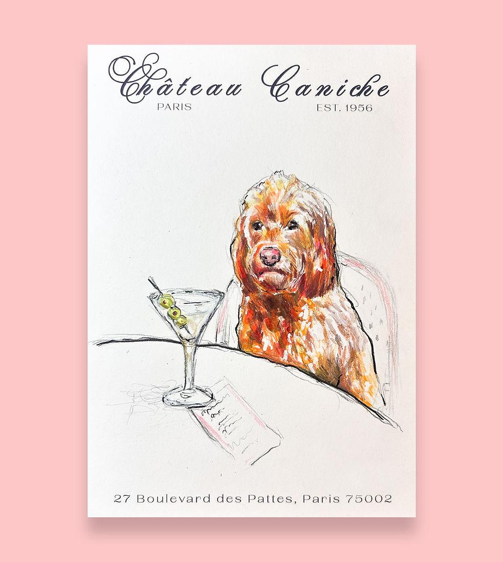 Custom Drawing: Château Caniche- The Cocktail Hour Portrait